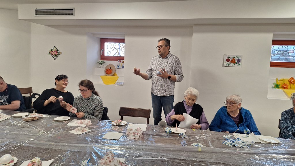 Sudionici su zatim tehnikom decoupage ukrašavali pisanice, a ova tehnika je korištena upravo iz razloga kkao bi se omogućilo svim sudionicima da uspješno izrade pisanice budući da su mnogi to radili po prvi puta, a i s obzirom na njihove zdravstvene poteškoće i ograničenja.