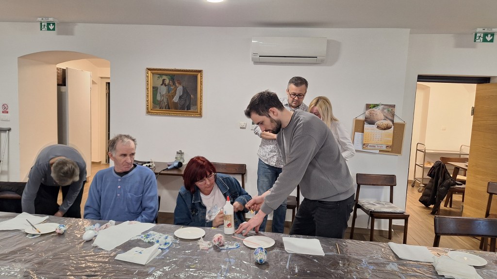 Temeljem dogovorene suradnje udruge „Peski-Art Đurđevac“ i Centra za osobe s invaliditetom Đurđevac u srijedu 11. ožujka 2026. održana je druga kreativno zabavna radionica za korisnike Centra. Radionica je bila na temu izrade i oslikavanja uskrsnih pisanica, a vodio ju je član udruge Dražen Milenković iz Dubrave koji je ujedno i predsjednik Kulturne udruge „Sveti Martin“ iz Dubrave.