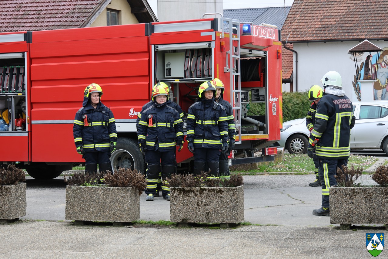 Program je započeo postrojavanjem sudionica, nakon čega je uslijedila pokazna vatrogasna vježba članica DVD-a Rasinja.