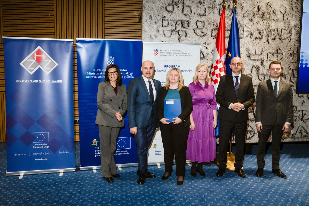 Ministar rada i mirovinskoga sustava, obitelji i socijalne politike Alen Ružić danas je u Zagrebu svečano uručio 55 ugovora vrijednosti više od 15 milijuna eura u okviru Poziva „Širenje mreže socijalnih usluga u zajednici“ koji se financira iz Europskog socijalnog fonda plus (ESF+). Poziv je usmjeren na daljnje širenje i povećanje dostupnosti usluga, povećanje dostupnosti i kvalitete socijalnih usluga te prevenciju institucionalizacije.
