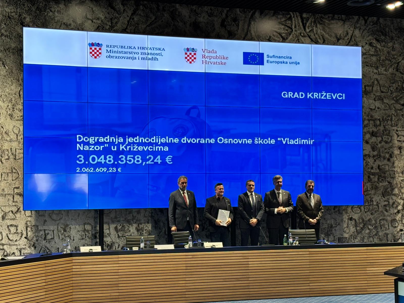 Županu Golubiću ugovor je uručio predsjednik Vlade RH Andrej Plenković u prisustvu ministra znanosti i obrazovanja Radovana Fuchsa i Dragana Jelića, ravnatelja Središnje agencije za financiranje i ugovaranje programa i projekata Europske unije.