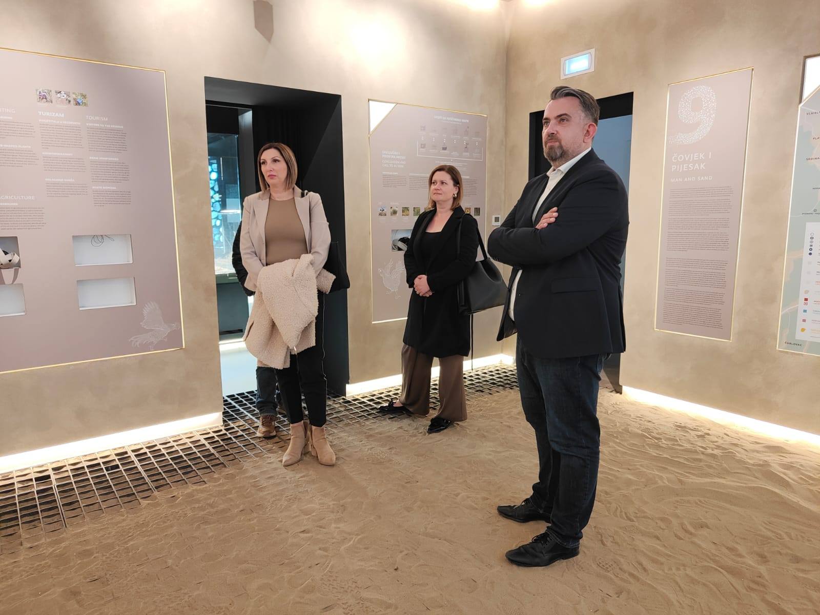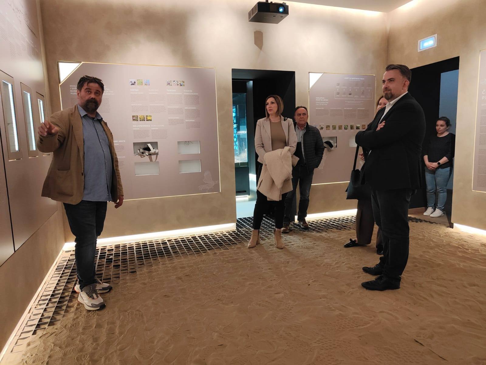 U sklopu posjeta Đurđevcu župan je sa suradnicima obišao i Posjetiteljski centar Đurđevački pijesci, gdje se upoznao s interaktivnim postavom koji na suvremen i edukativan način prikazuje nastanak jedinstvenog lokaliteta „Podravske sahare“.