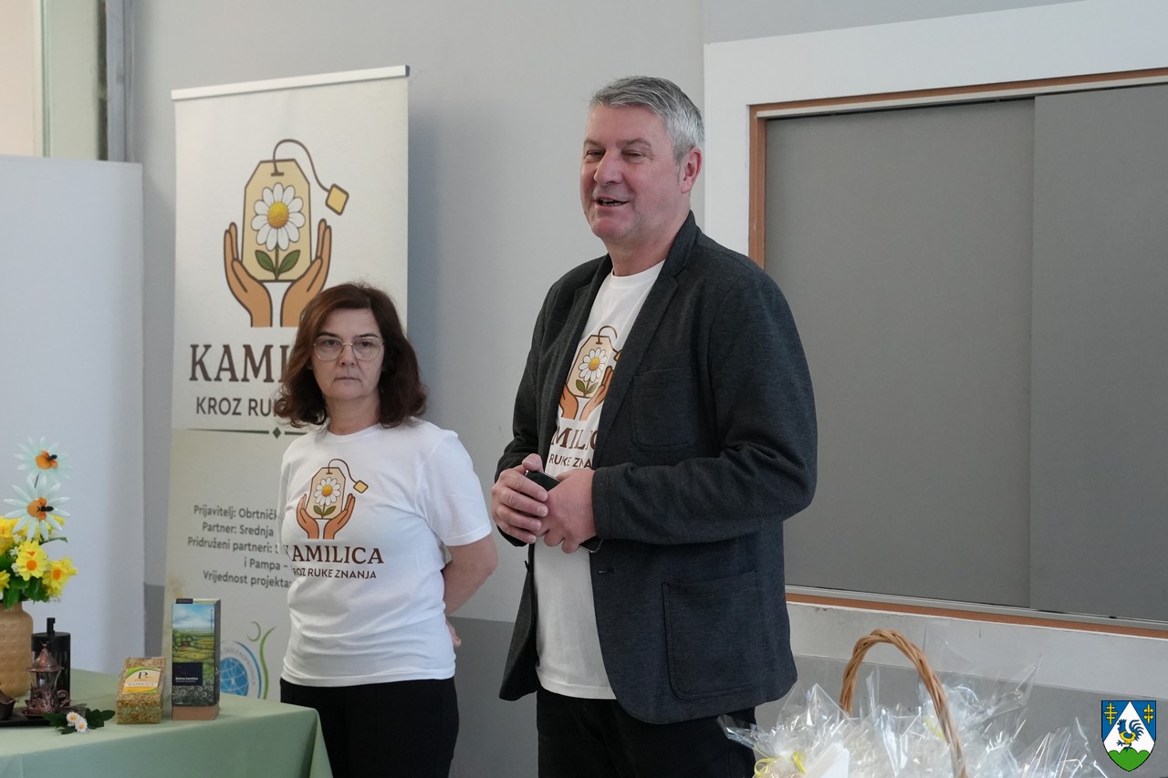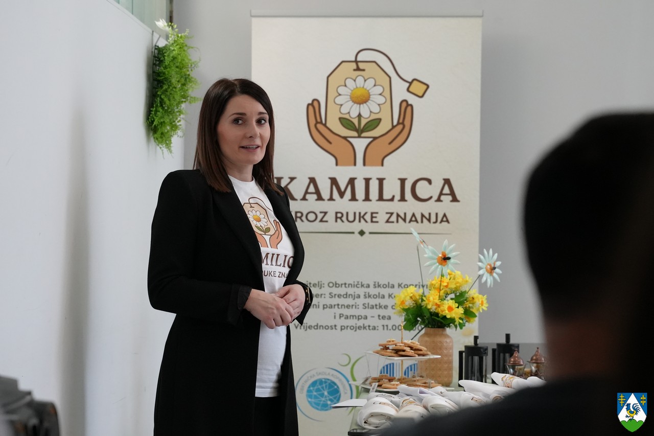 Projekt „Kamilicom kroz ruke znanja“, usmjeren na jačanje praktičnih znanja i vještina mladih te povezivanje obrazovanja s lokalnom tradicijom i održivim razvojem, predstavljen je danas na uvodnoj konferenciji održanoj u ugostiteljskom praktikumu Obrtničke škole Koprivnica, a podršku projektu pružio je zamjenik župana Mario Rajn.