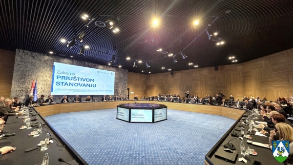 U Nacionalnoj i sveučilišnoj knjižnici u Zagrebu danas je u suorganizaciji Hrvatske zajednice županija predstavljen Nacrt prijedloga Zakona o priuštivom stanovanju te je raspravljano o odredbama nedavno donesenog Zakona o prostornom uređenju koje se odnose na priuštivo stanovanje. Nacrt je predstavio potpredsjednik Vlade Republike Hrvatske i ministar prostornoga uređenja, graditeljstva i državne imovine Branko Bačić, a zastupnica u Europskom parlamentu Nikolina Brnjac osvrnula se na europsku dimenziju priuštivog stanovanja. Sastanku su prisustvovali župan Tomislav Golubić i pročelnik Upravnog odjela za prostorno uređenje, gradnju i imovinska prava Nenad Hunjadi.
