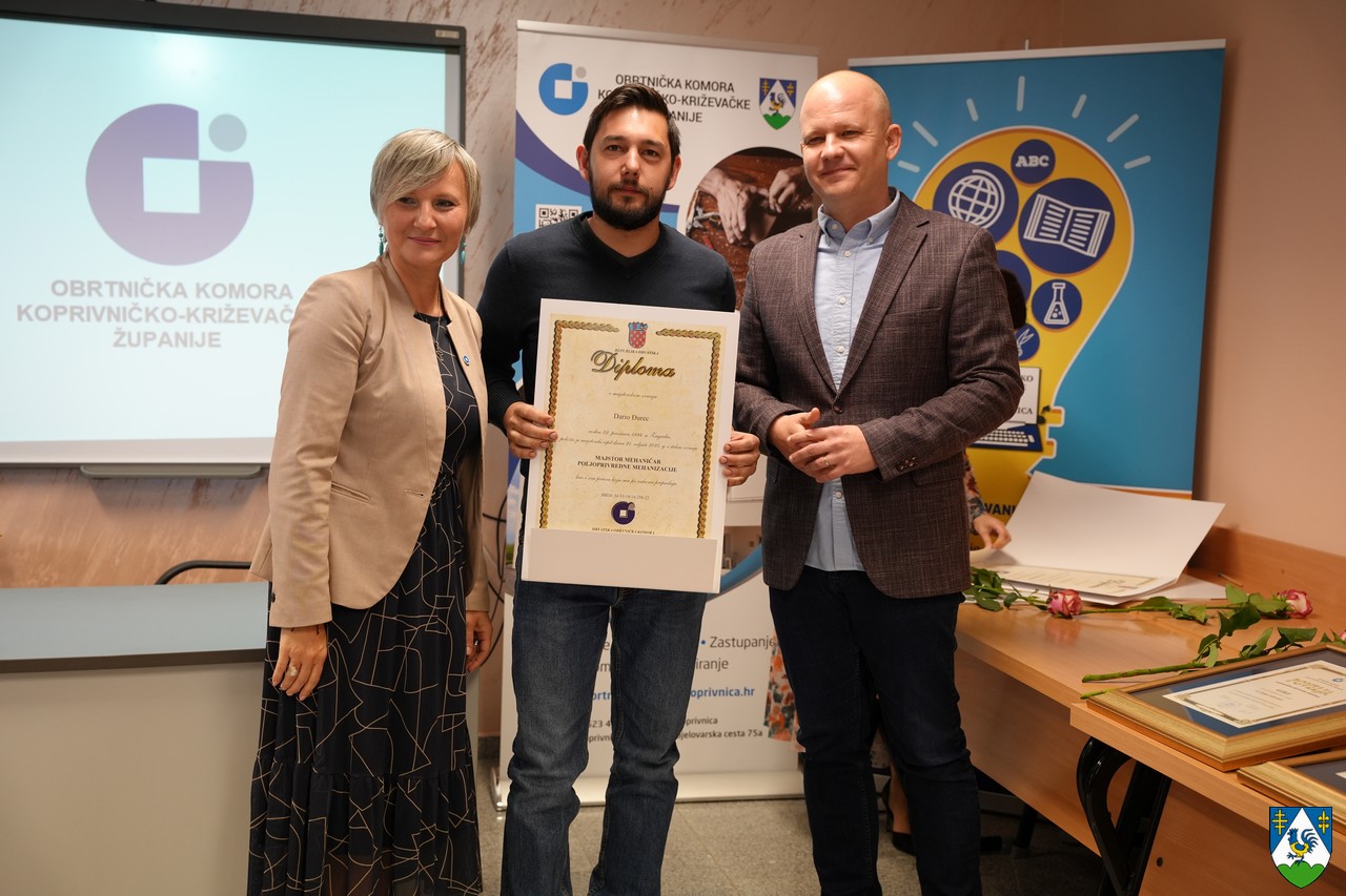 U organizaciji Obrtničke komore Koprivničko-križevačke županije danas je održana svečana dodjela majstorskih diploma i priznanja najstarijim aktivnim obrtima, događanje koje je na jednom mjestu okupilo početke i kontinuitet obrtništva, nove majstore i obrte koji traju već desetljećima. Podršku obrtnicima pružili su župan Tomislav Golubić i potpredsjednik Hrvatskog sabora i koprivnički gradonačelnik Mišel Jakšić.
