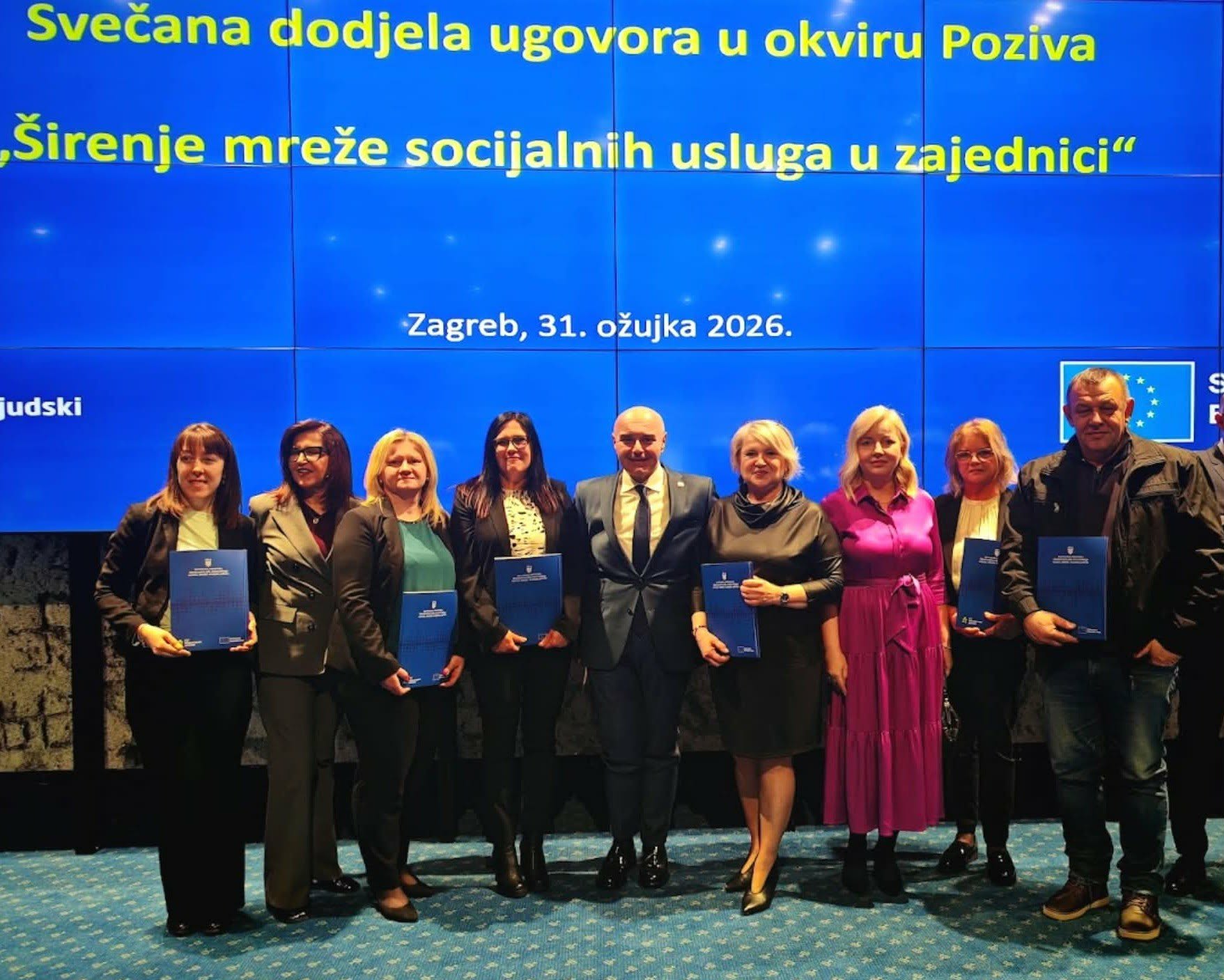 Ministar rada i mirovinskoga sustava, obitelji i socijalne politike Alen Ružić danas je u Zagrebu svečano uručio 55 ugovora vrijednosti više od 15 milijuna eura u okviru Poziva „Širenje mreže socijalnih usluga u zajednici“ koji se financira iz Europskog socijalnog fonda plus (ESF+). Poziv je usmjeren na daljnje širenje i povećanje dostupnosti usluga, povećanje dostupnosti i kvalitete socijalnih usluga te prevenciju institucionalizacije.